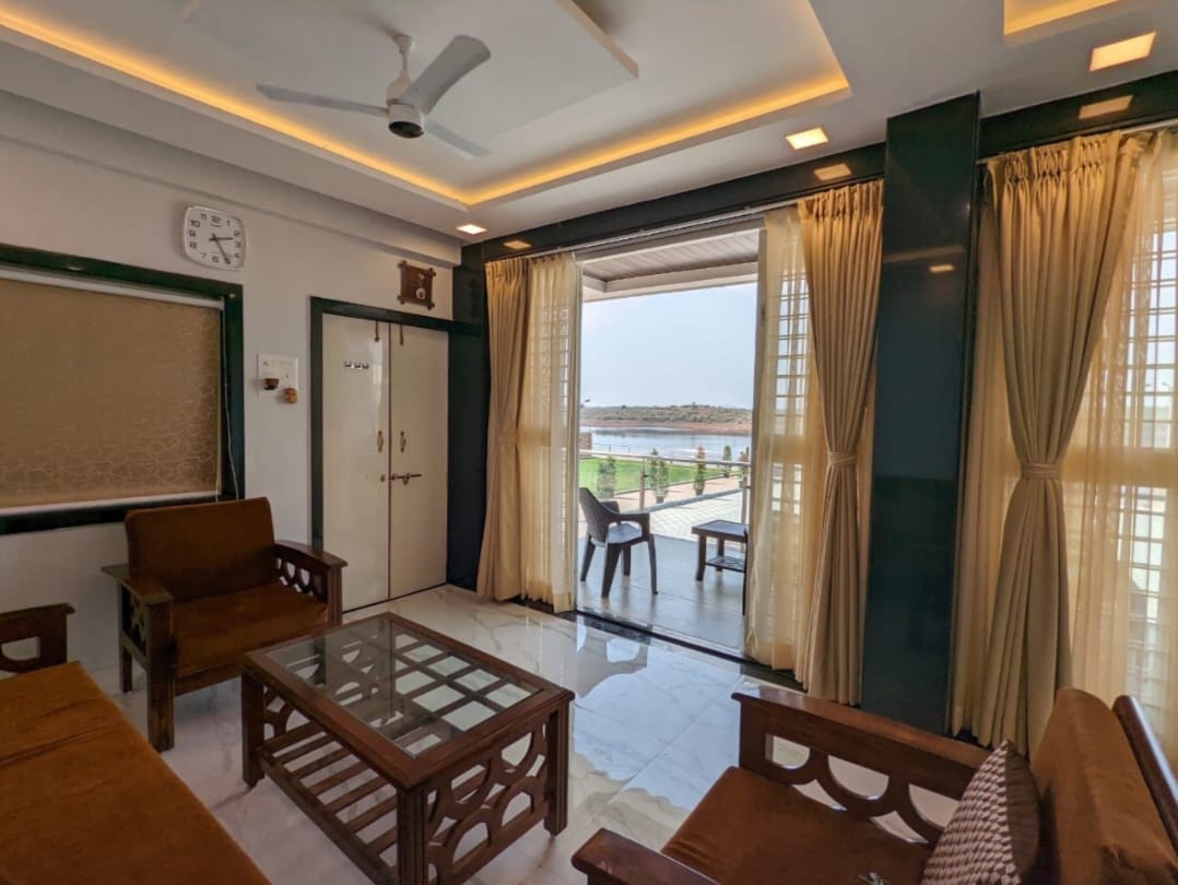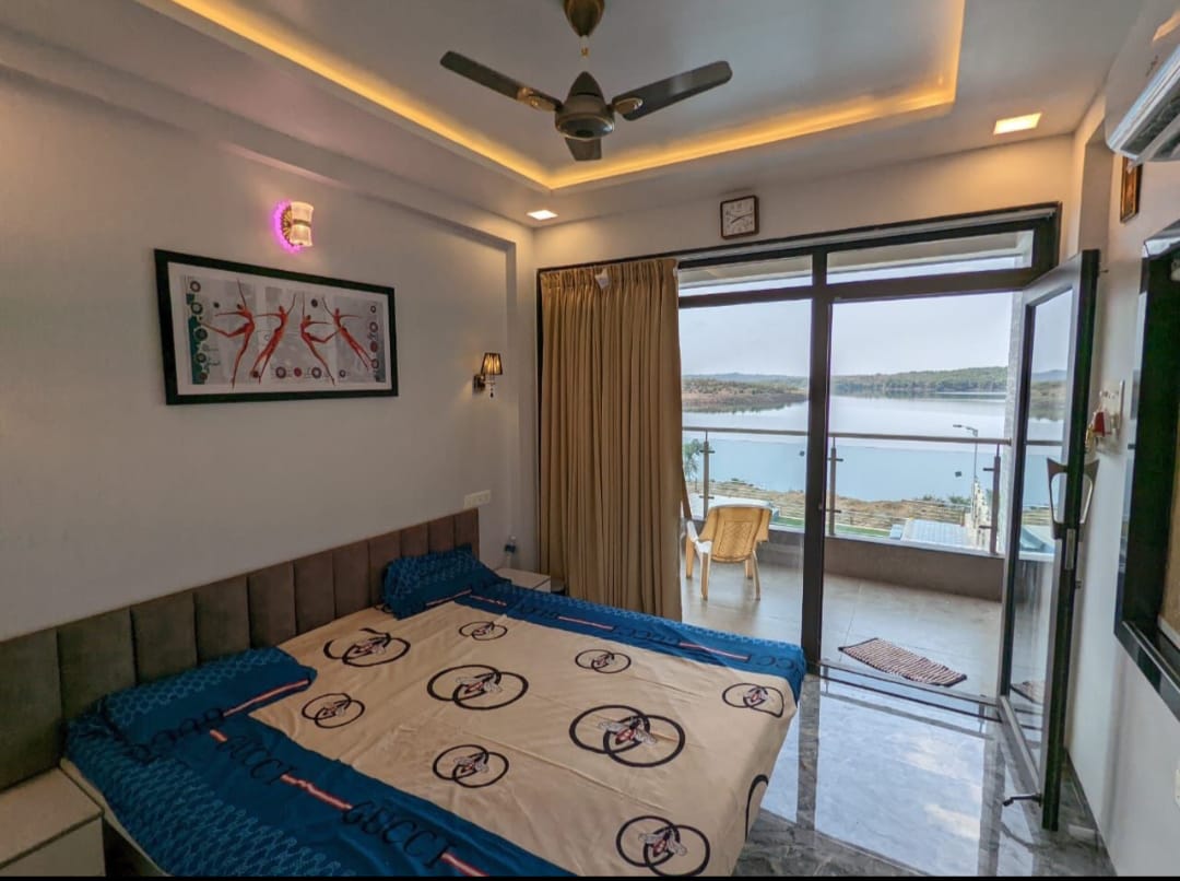 Experience serenity at its finest in our 3BHK Lake View villa in Pawna Lonavala . Nestled against the picturesque backdrop of a tranquil lake, this villa offers a perfect blend of modern comfort and natural beauty. Enjoy spacious interiors, breathtaking views, and a private garden for a luxurious retreat.