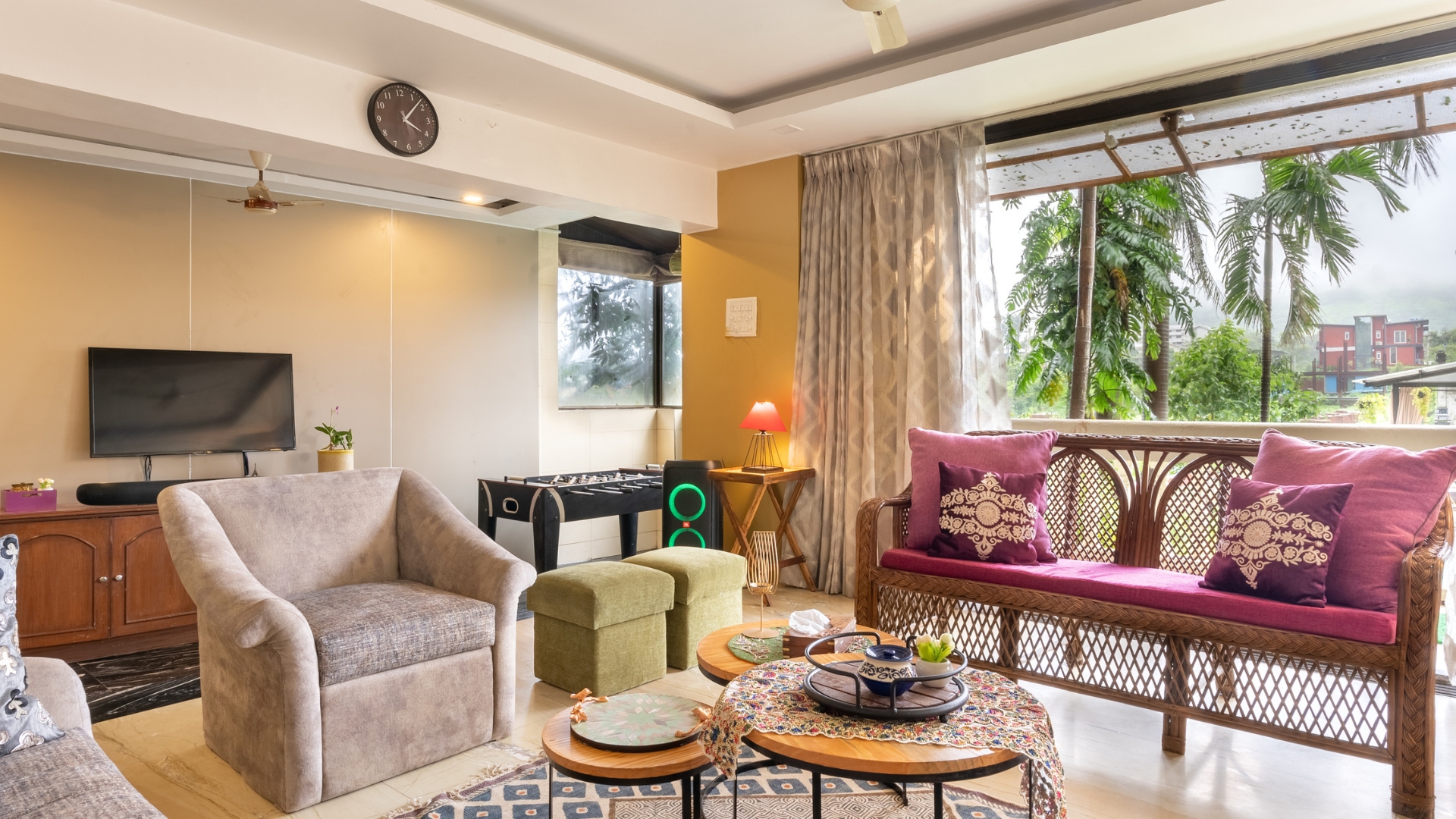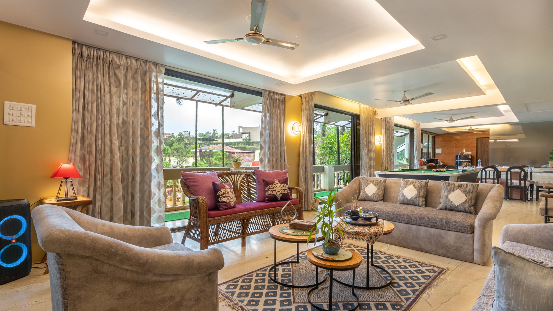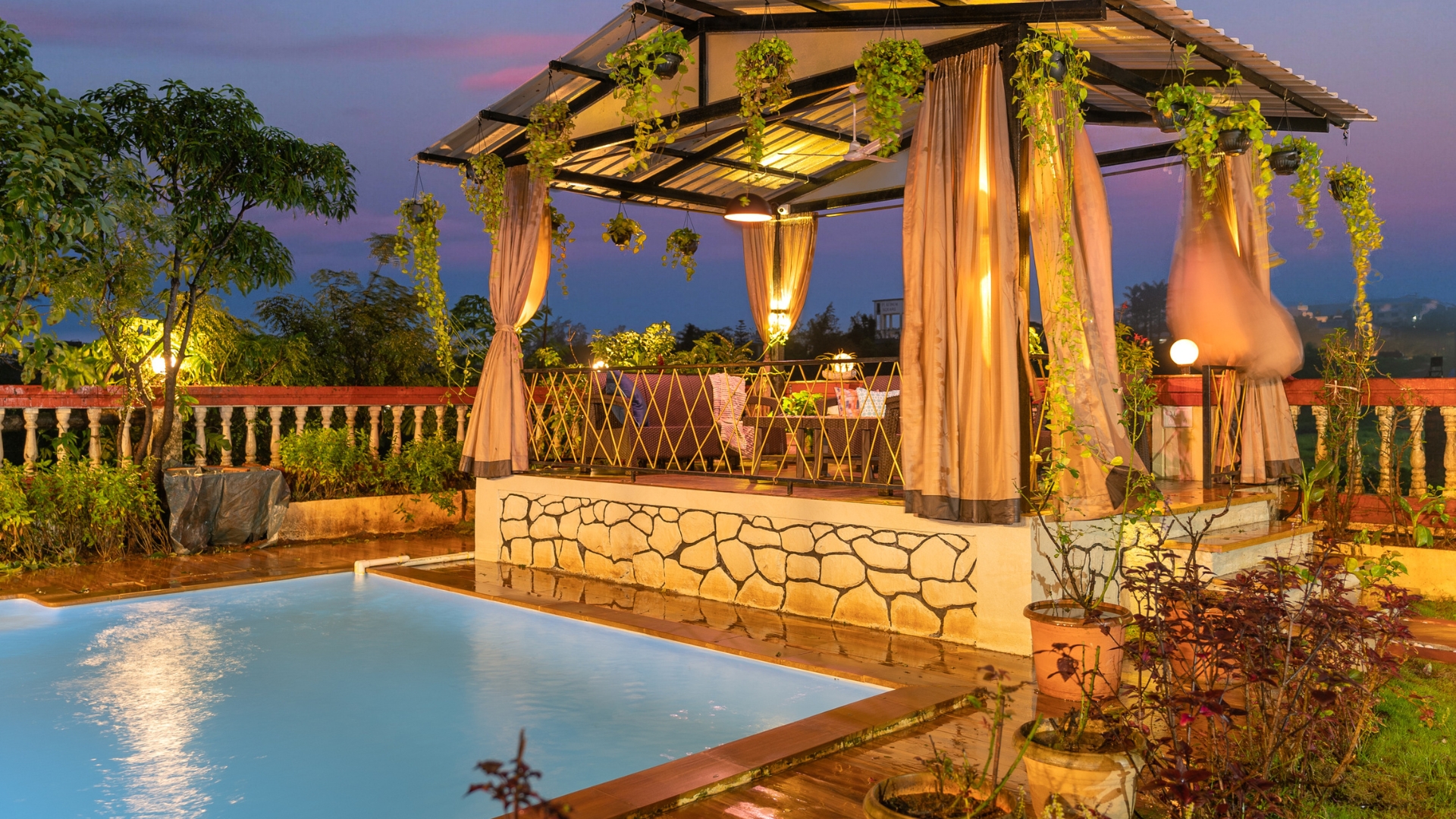 Explore the grandeur of our opulent 5BHK Villa in Lonavala with Private Poo, a riverfront sanctuary spanning 12,000 sq feet. With 5 air-conditioned bedrooms, attached bathrooms, a large running balcony, and a private pool featuring a Shamiana/Gazebo, each level offers unmatched luxury. Delight in a dedicated dining area, a pool table, foosball table, trampoline, and a sunset deck for leisure. Revel in the breathtaking river view that complements the villa’s allure. Book now for an exquisite escape into the lap of luxury!