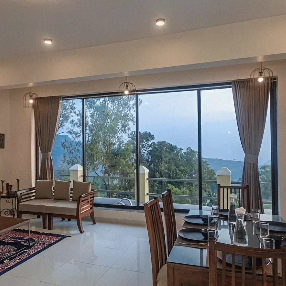* 7 AC bedrooms are scenic facing with attached bathrooms. * Water purifier + Sanitization facilities (your safety our priority) * Large Dining area over facing the valley.
