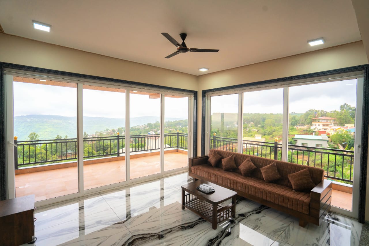 Indulge in the tranquility of our 5BHK Mountain View Villa with private pool in Mahabaleshwar . With 2 spacious living areas, 7 bathrooms, and 3 rooms featuring attached balconies, this villa offers the epitome of comfort. Enjoy breathtaking views from the outdoor swimming pool and kids pool. Wheelchair access ensures inclusivity, while the inverter provides backup for up to 42 hours. Revel in valley views, heated water 24/7, and the expansive turf area for cricket, football, volleyball, and badminton. Host gatherings in the gazebo with a guest capacity of 20 people. Book now for a serene escape!